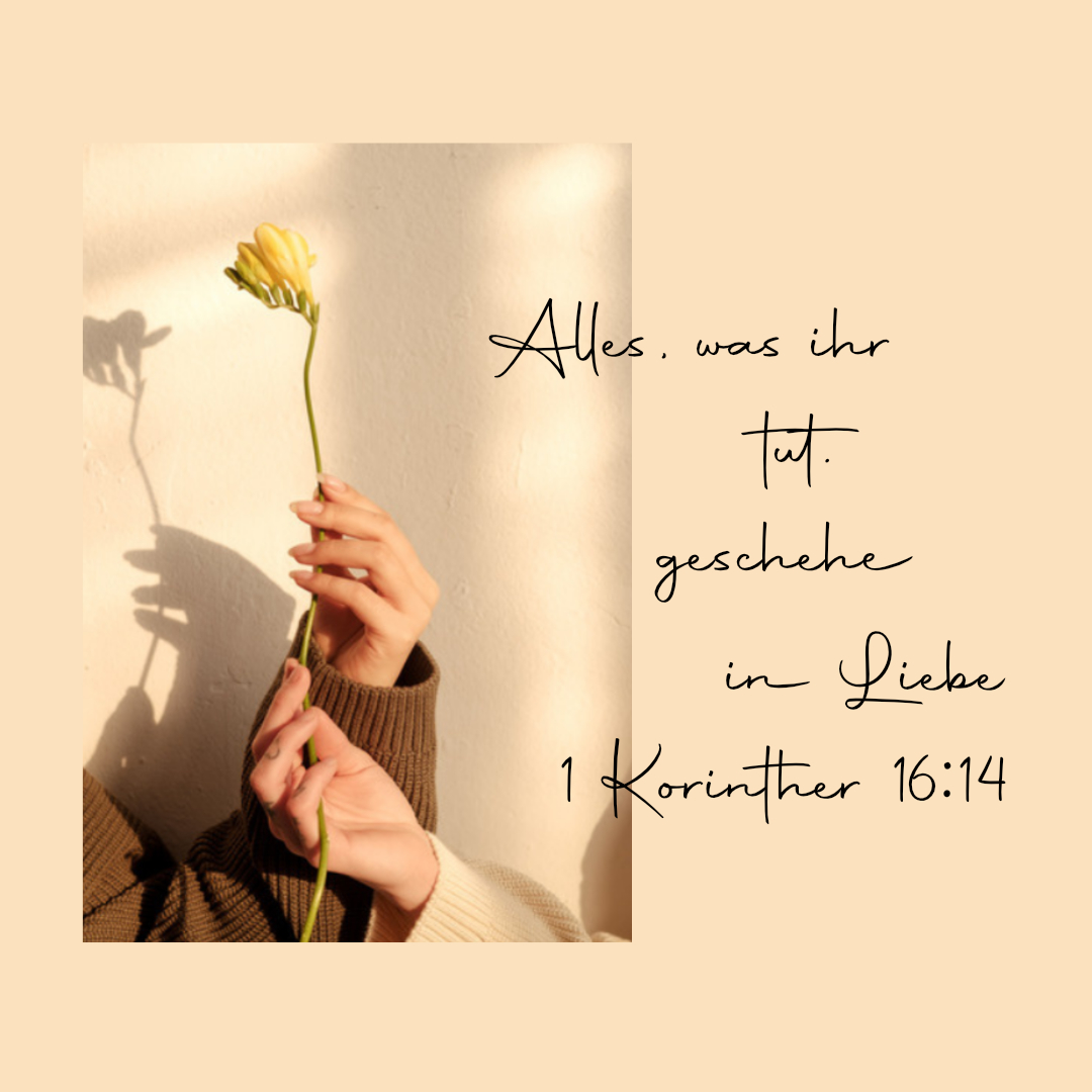 Aber, und das ist die gute Nachricht, Gott verlangt nicht von uns, aus eigener Kraft in dieser Liebe zu handeln. Es geht nicht darum, ein besserer Mensch zu sein oder unser Leben zu optimieren. Ich glaube nicht, dass der Vers uns dazu auffordert, uns übermäßig anzustrengen oder alles mit uns machen zu lassen. Ja, wir sollen aus Liebe handeln und auch manche Situationen aufgrund von Liebe aushalten, aber Liebe missbraucht nicht.