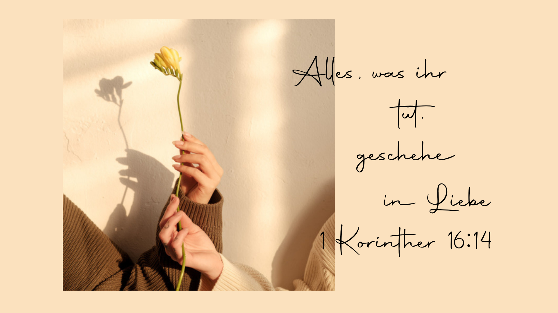 Aber, und das ist die gute Nachricht, Gott verlangt nicht von uns, aus eigener Kraft in dieser Liebe zu handeln. Es geht nicht darum, ein besserer Mensch zu sein oder unser Leben zu optimieren. Ich glaube nicht, dass der Vers uns dazu auffordert, uns übermäßig anzustrengen oder alles mit uns machen zu lassen. Ja, wir sollen aus Liebe handeln und auch manche Situationen aufgrund von Liebe aushalten, aber Liebe missbraucht nicht.